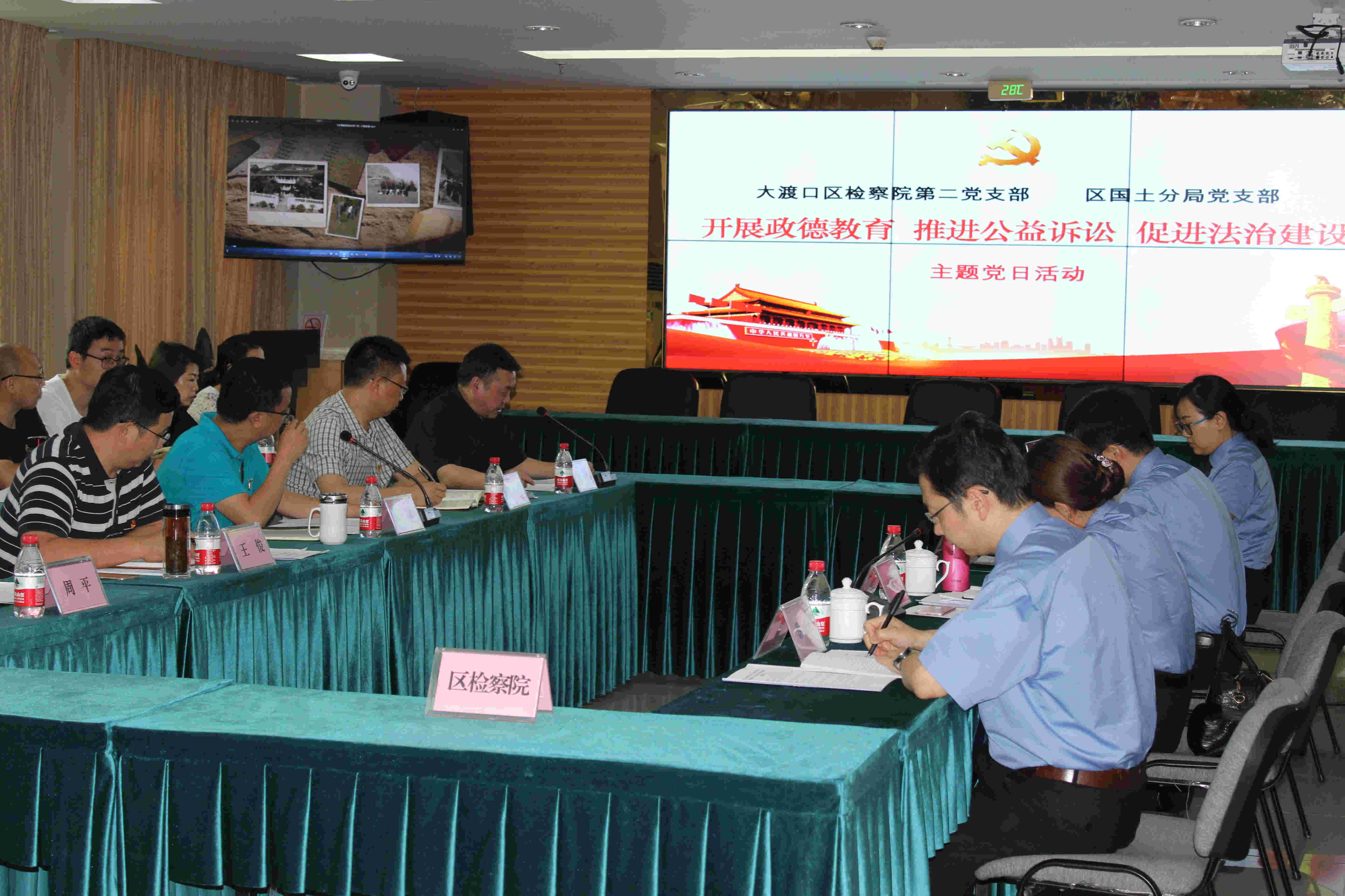 为认真贯彻习近平总书记关于既讲法治又讲德治的重要指示精神,提升党员干部担当作为、依法行政的意识和能力,6月14日上午,大渡口区国土分局党支部联合区检察院第二党支部组织举行“开展政德教育、推进公益诉讼、促进法治建设”开放式主题党日活动。